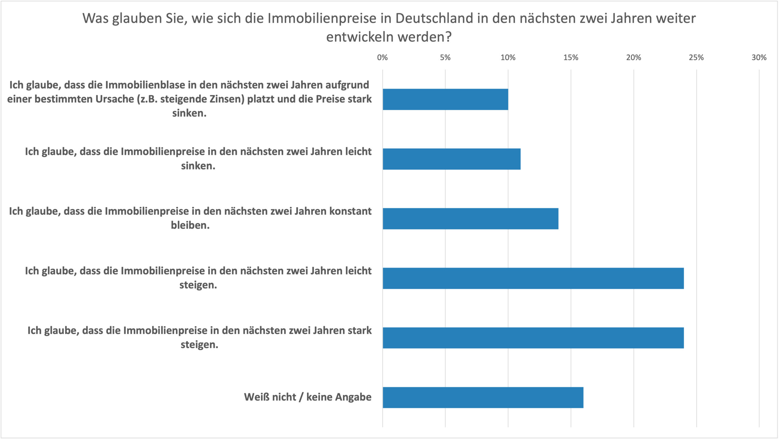 Werden die Immobilienpreise weiter steigen? Oder kommt die Entwicklung an einen Wendepunkt? Das glauben die Deutschen